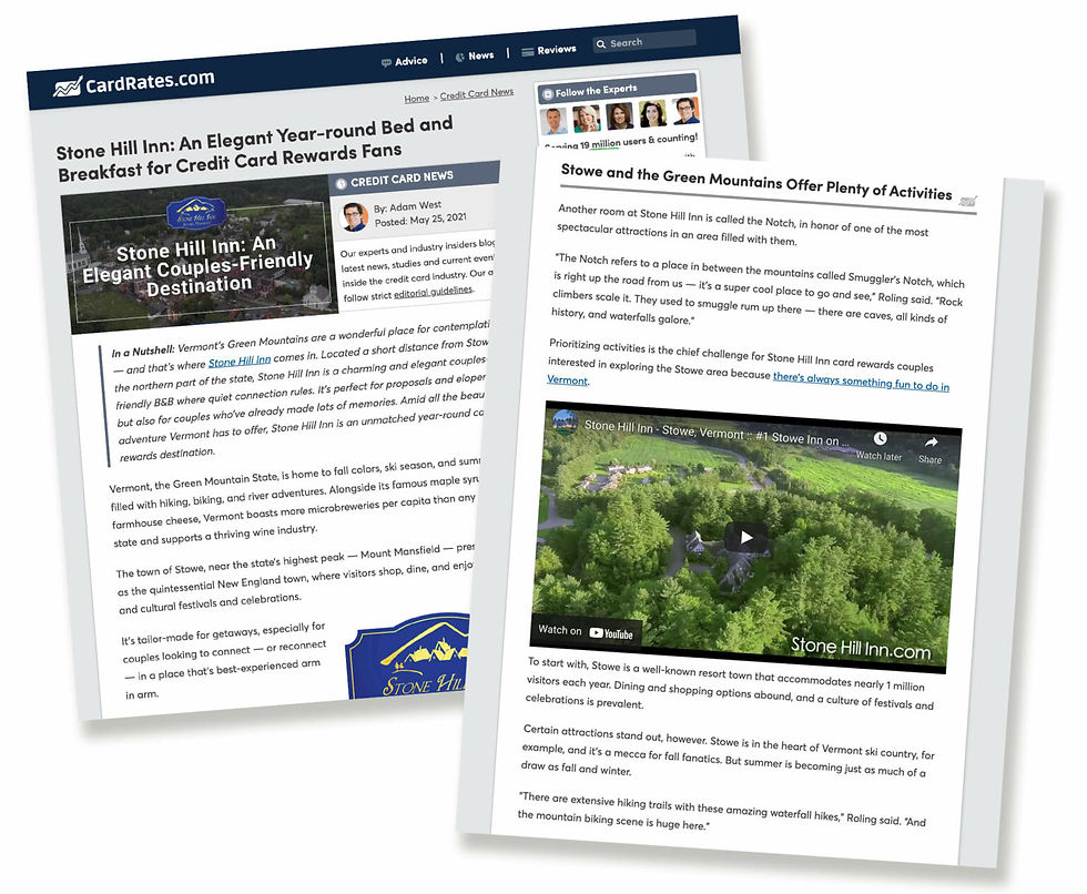 Stone Hill Inn Chosen as “Featured Destination” by CardRates.com